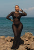 Elevate your beach look with the Linus Cover Up Dress. This elegant black dress features long mesh sleeves and a flared bottom, evoking a sense of sophistication and luxury. Perfect for covering up while still looking chic.