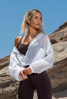 Sheer Form Cropped Pullover Windbreaker - White